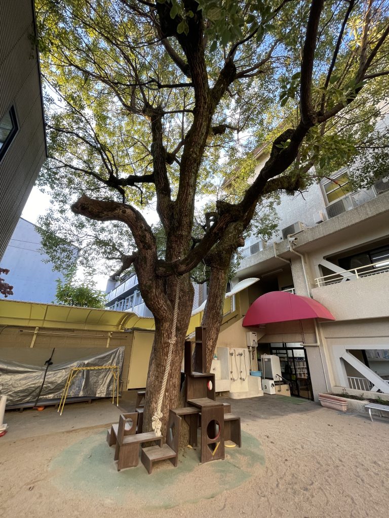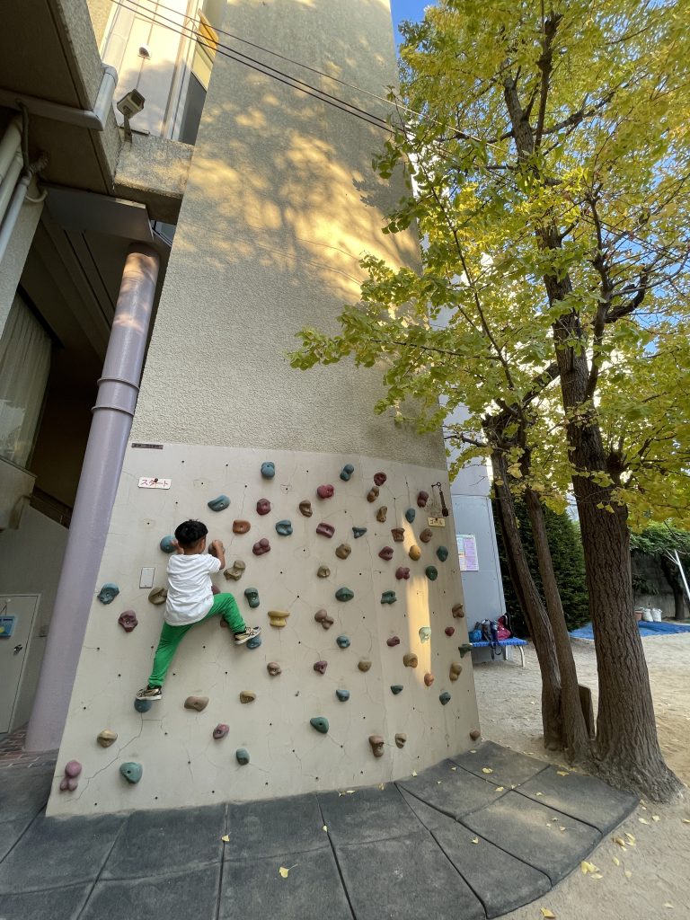 それと同時に、石橋さんは“遊びの空間”としての園庭の可能性も追求してきました。大きな木にターザンロープやブランコを取りつけたり、壁にボルダリング用のホールドを設置したりと、決して広くはない園庭を、子どもたちが夢中になれる冒険の舞台へと変えていきまし た。